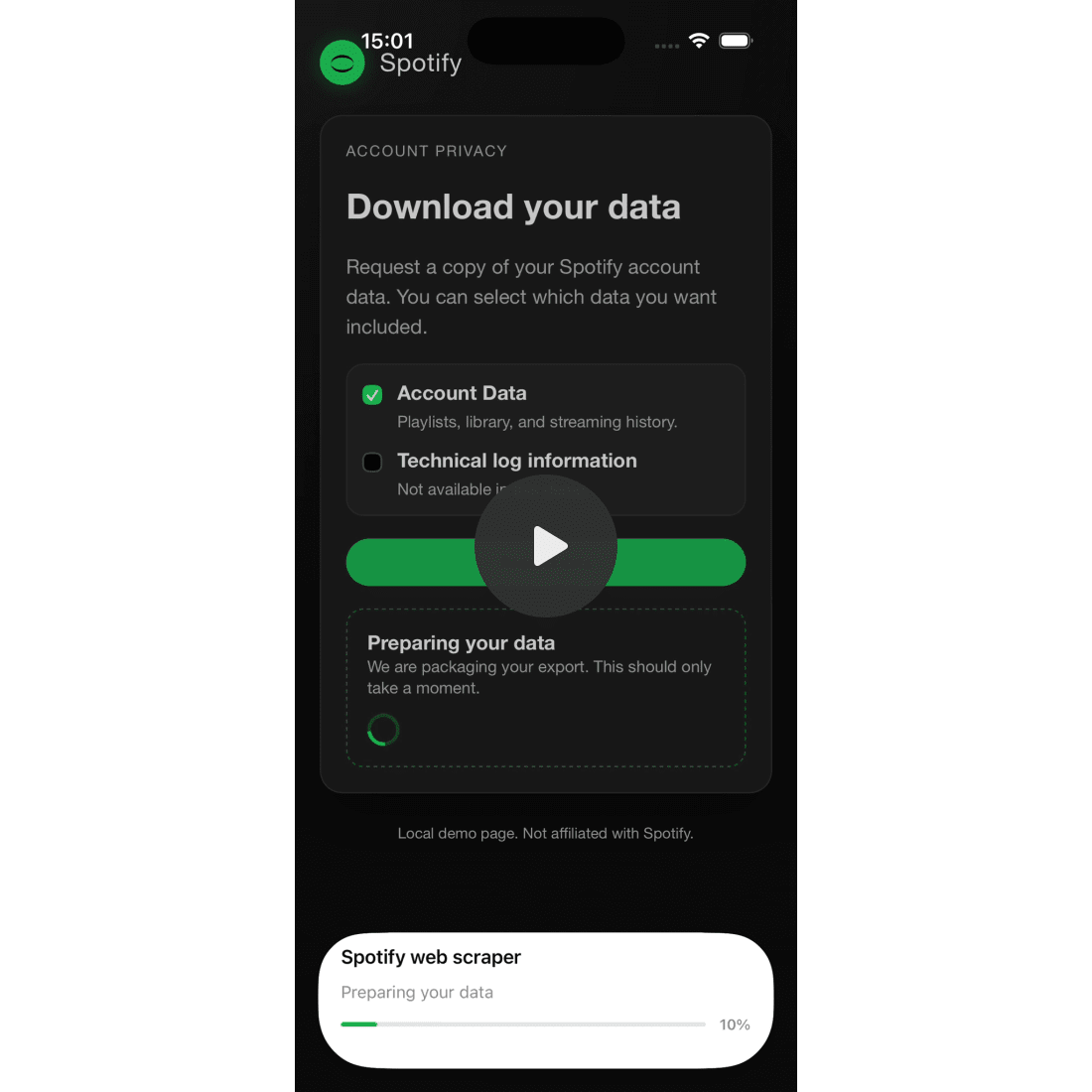 Between the extremes, a quiet middle class at #88 on the technology leaderboard who are probably pulling in something like minimum wage (p.s. that’s exactly where I’m at, hence my recent job-hunt). This power-law distribution shows up everywhere. In software engineering, it manifests in the complexity of problems that we work on day-to-day. There is a very long tail of everyday “build this screen” or “investigate this bug” that you can largely perform on autopilot. There are regular mid-level challenges in the middle, that crop up every month or two: profile this subtle performance problem, or help architect this new feature. Once in a blue moon; maybe just once in your career; you have to pull off something nobody’s built before. Something with so many moving parts it needs constant work to prevent it overwhelming your team. This rare peak challenge is what I’m bringing to you today. The hardest engineering challenge I have ever faced. A one-of-a-kind feature that orchestrated an automated, client-side, comprehensive, high-volume data ingestion pipeline. Building a reliable system on top of an unreliable system is always quite traumatic, so please excuse my occasional abrupt screams as I write this. The original pipeline allowed you to fetch your Google data, which could reach Gigabyte scale for each user, the root of much of the complexity. For this example, however, I’m doing the same thing with my Spotify data, because open-sourcing my music search history in the sample project will be less likely to get me arrested. I didn’t build this bad boy from scratch. This system was inherited MVP form, by an engineer who is a lot more intelligent than me. I did, however, have the pleasure of spending a year hardening the pipeline from a neat (but fragile) pipeline into a battle-hardened production system that worked robustly. This article comes complete with the full sample project, demoing the whole pipeline in its glory (with companion server code!) Come and see the man-made horrors beyond your comprehension.