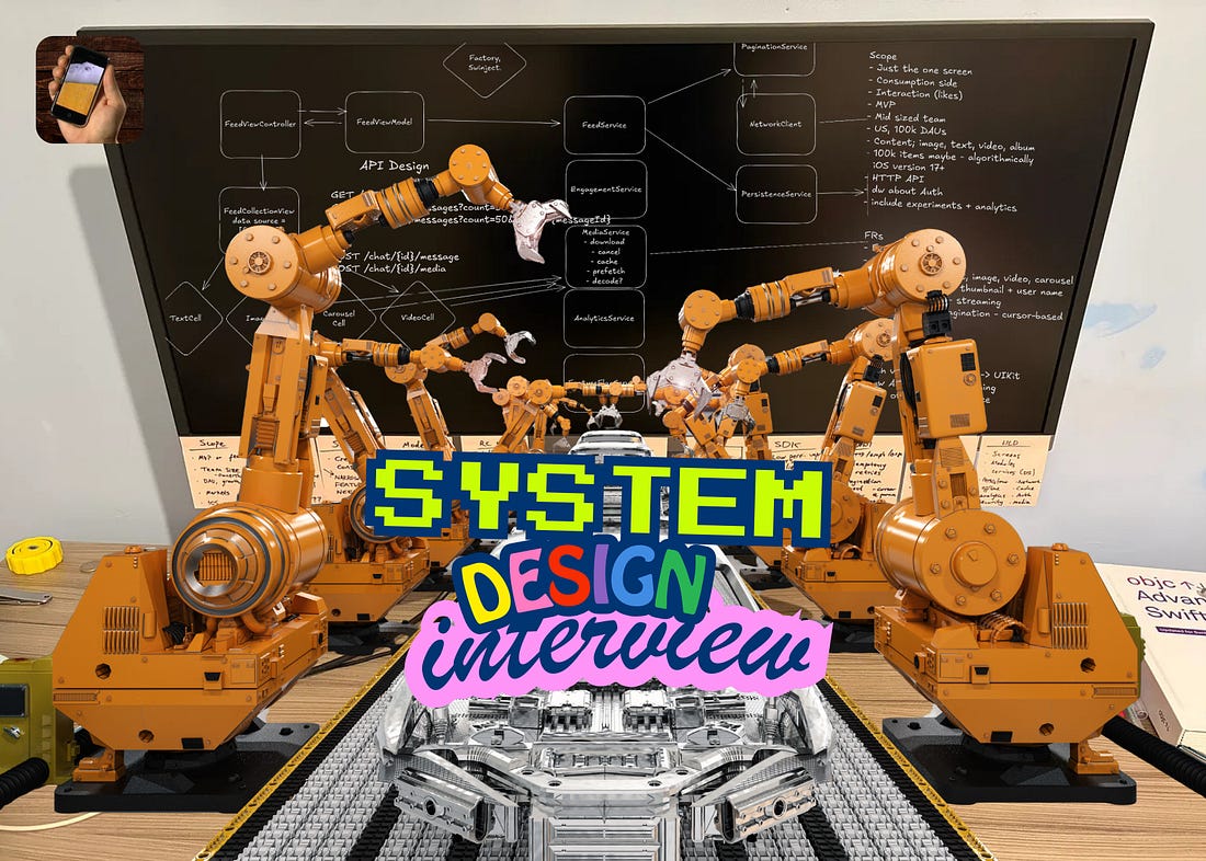 There are virtually no resources online (aside from expensive coaching) that teach you to tackle these interviews for iOS roles. Until now. I went through an extremely intensive interview grind at the end of 2025, and faced down three system design challenges at three different companies. I’m coming to you today with personal, hard-won experience. The real meat and potatoes here is a full worked example: a real system design interview, demonstrating what you can expect from a system design round today and how to tackle the problem. For dessert, I’ll highlight all the parts of prep work that were actually useful, so your own grind can be efficient and (mostly) painless. A framework to structure every interviewA lot of interviewers these days will try to pretend that your interview is a casual chat. Don’t be fooled. Obviously, act natural, smile, but it will never hurt you to introduce some formality via a framework. A framework is a simple structure you can follow to answer the problem. A reusable way of arranging your thoughts while you design the system. The framework goes like this: